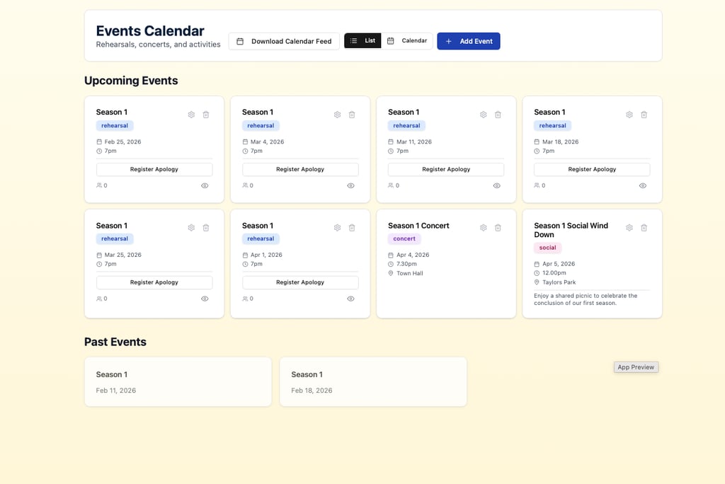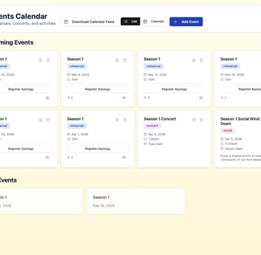 Track attendance, manage seasons, and keep musical standards high with clear expectations.